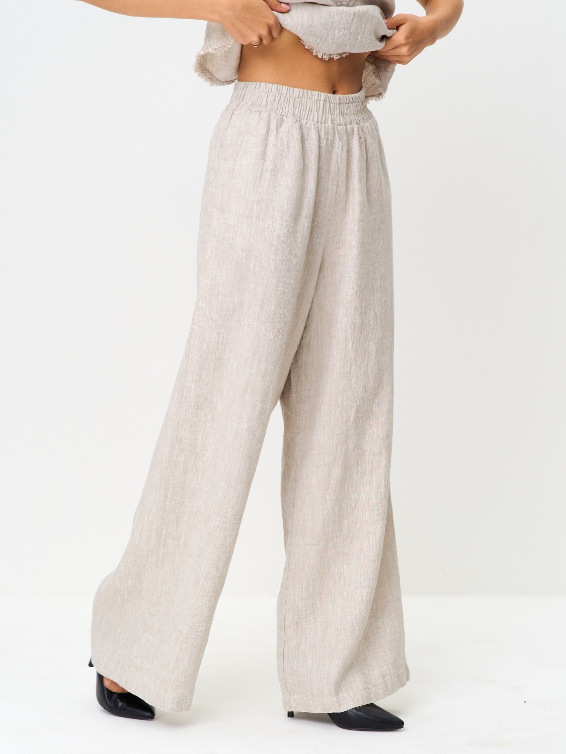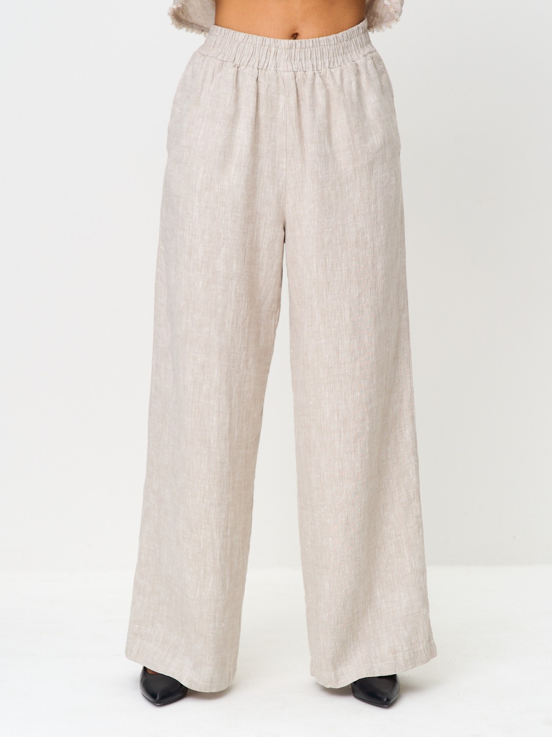 Брюки женские льняные ANNAMAX — это идеальный выбор для комфорта и стиля в летний сезон. Сшитые из 100% льна, они обладают превосходной воздухопроницаемостью и дышащим материалом, что обеспечит вам свежесть и комфорт в течение всего дня. Широкий крой и высокая посадка создают элегантный силуэт, а гладкая фактура ткани придает брюкам утонченный вид. Благодаря антибактериальным свойствам, эти брюки остаются свежими даже в жаркую погоду. Модель универсальна и подходит как для повседневной носки, так и для офиса или отдыха на пляже.