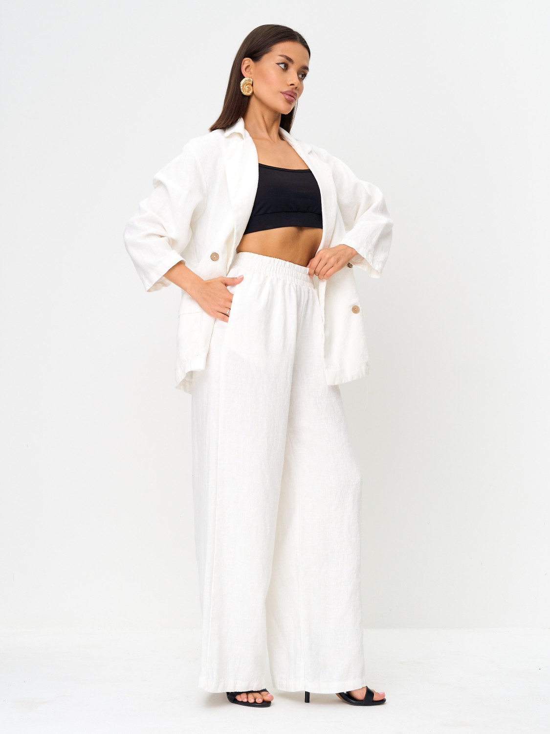 Брюки женские льняные ANNAMAX — это идеальный выбор для комфорта и стиля в летний сезон. Сшитые из 100% льна, они обладают превосходной воздухопроницаемостью и дышащим материалом, что обеспечит вам свежесть и комфорт в течение всего дня. Широкий крой и высокая посадка создают элегантный силуэт, а гладкая фактура ткани придает брюкам утонченный вид. Благодаря антибактериальным свойствам, эти брюки остаются свежими даже в жаркую погоду. Модель универсальна и подходит как для повседневной носки, так и для офиса или отдыха на пляже.