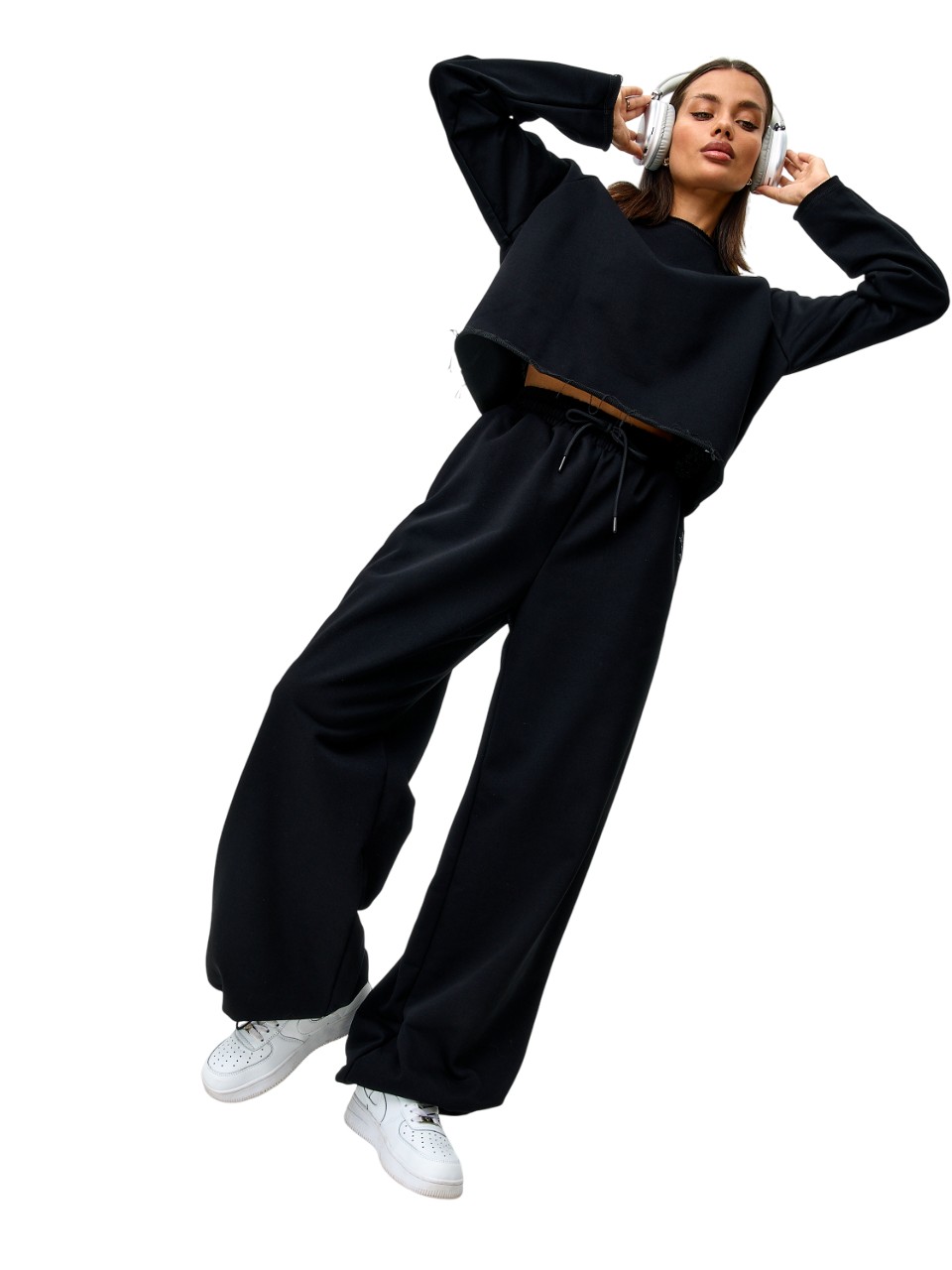 Женские спортивные брюки — идеальное сочетание комфорта и современного стиля. Широкий прямой крой придаёт образу лёгкость и архитектурность. Брюки идеально сидят на любой фигуре — не обтягивая, а гармонично распределяя ткань по телу. Эластичный пояс с шнурком обеспечивает удобную посадку и позволяет легко регулировать объём. Утягивающие резинки внизу — добавляют акцент на силуэте, предотвращают запачкивание и делают образ более выразительным