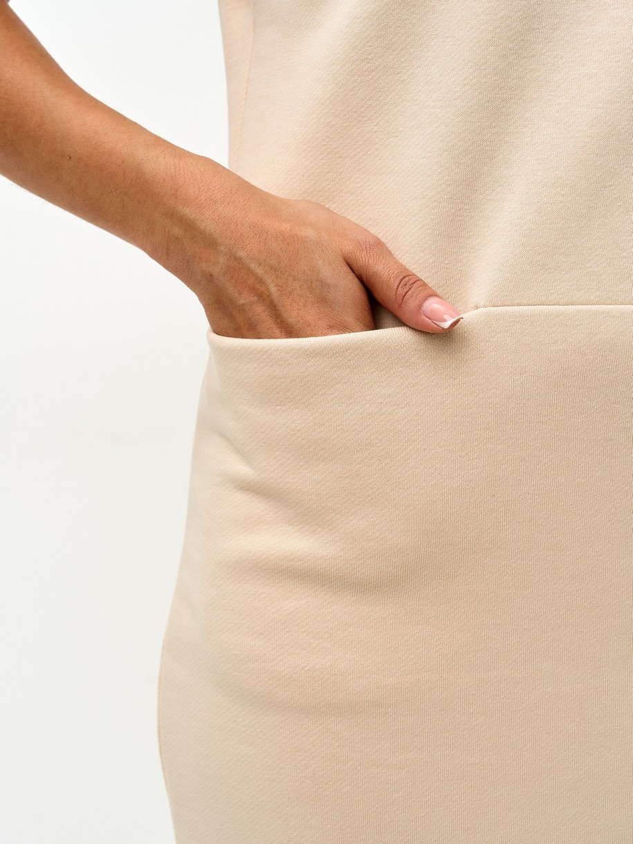 Платье из футера — это ваш новый базовый хит — для тех, кто ценит лаконичность, но не готов жертвовать стилем. Высокий воротник-стойка — не только тренд, но и элегантный акцент, который добавляет образу аристократичности. Короткие рукава с широкими манжетами создают эффект «воздушного» силуэта сверху, а юбка-карандаш — идеально подчёркивает линию бёдер и талии, не сковывая движений. Удобные карманы — не просто декор, а функциональный элемент, который делает платье ещё более практичным и современным. Красота этого платья — в его способности быть одновременно простым и глубоким, удобным и роскошным, повседневным и праздничным.
