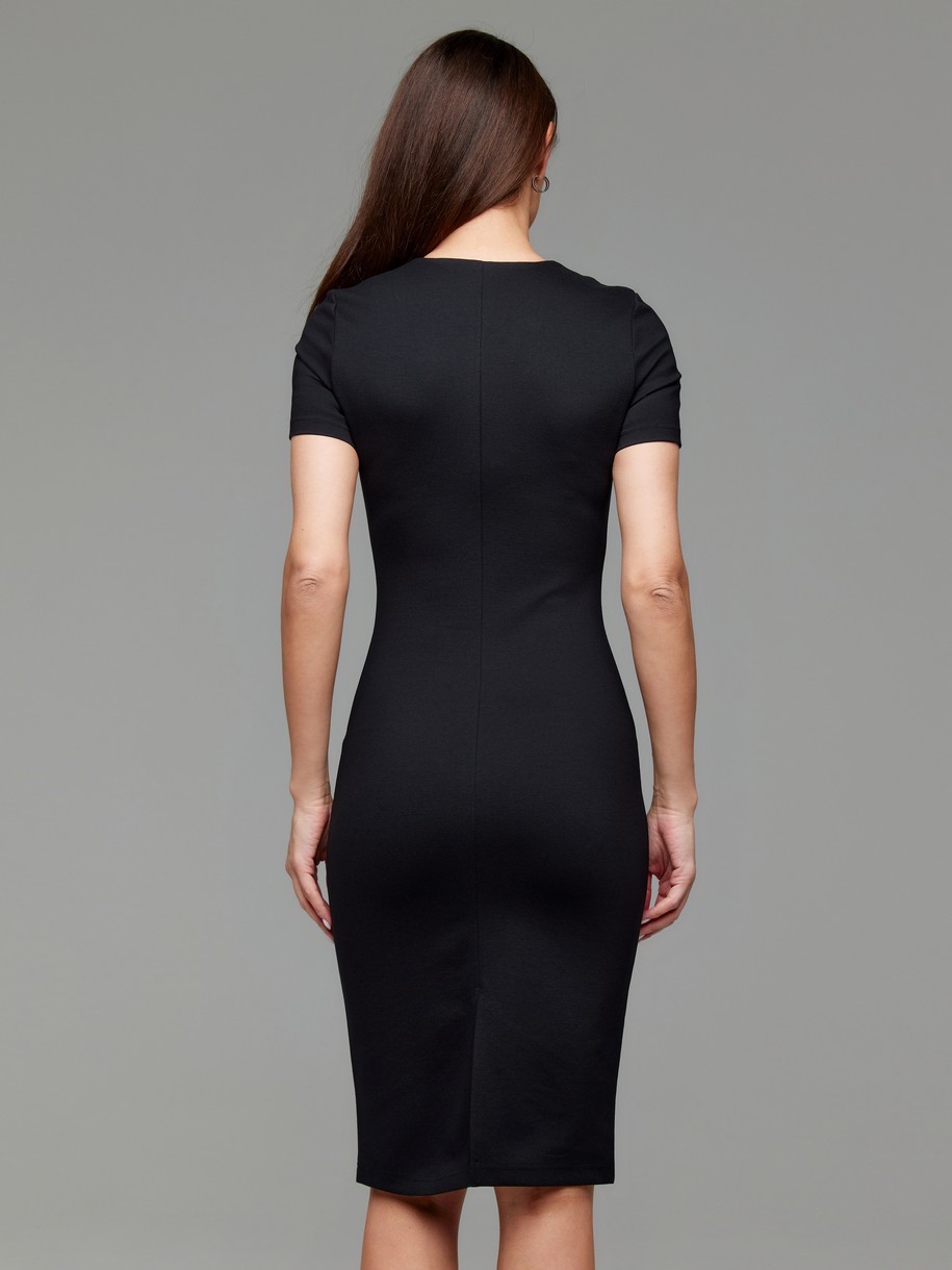 Платье миди с коротким рукавом - это стильное и универсальное решение для любого случая. Элегантное женское нарядное платье на вечеринку или выпускной – идеальный выбор для особого события в вашей жизни. Маленькое черное платье из вискозы воплощает женственность и стиль, добавляя уверенности и элегантности вашему образу.Длина миди делает платье подходящим для офисных мероприятий или деловых встреч. Модель обеспечит комфорт в течение всего дня. Короткий рукав позволят носить платье летом. В холодное время года наряд идеально комбинировать с вещами второго слоя. Разрез сзади добавляет нотку пикантности и удобства. Приталенное платье выгодно подчеркнет достоинства фигуры, а его летний дизайн добавит свежести и легкости вашему образу.