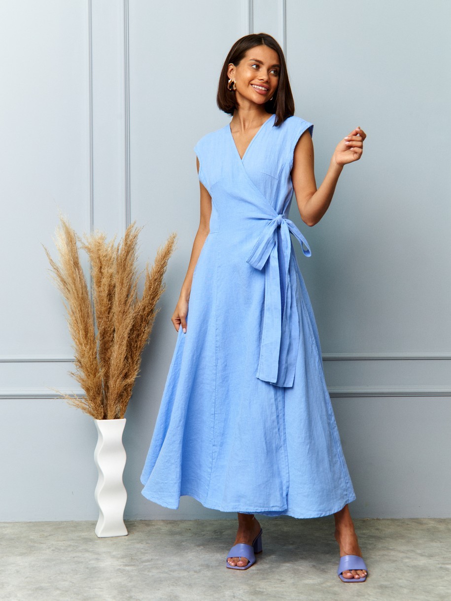 Льняное платье - это идеальный вариант для любого случая, сочетающее в себе стиль и комфорт. Крой с запахом идеально облегает фигуру, подчёркивая талию, не сковывая движений. Пояс-завязка позволяет регулировать посадку, делая каждое платье уникальным — как будто сшитым специально под вас. Высокий разрез спереди добавляет изящества и движения, а прямой или слегка расклешённый силуэт — универсальности. Материал — 100% натуральный лён — это основа комфорта и устойчивой моды. Он дышит, охлаждает тело, не вызывает раздражения и становится мягче с каждым ношением. Это ткань, которая живёт с вами, адаптируется, становится частью вашего образа.