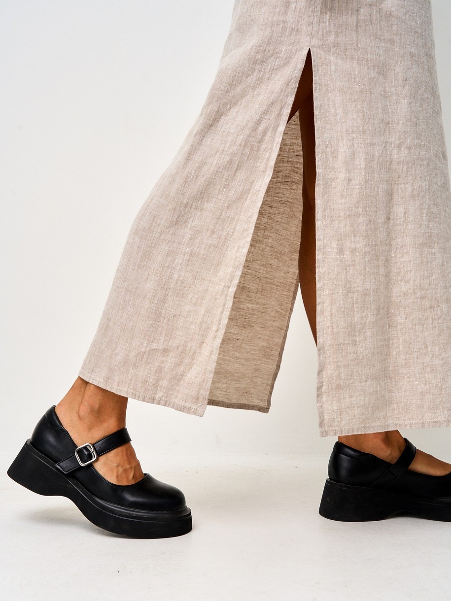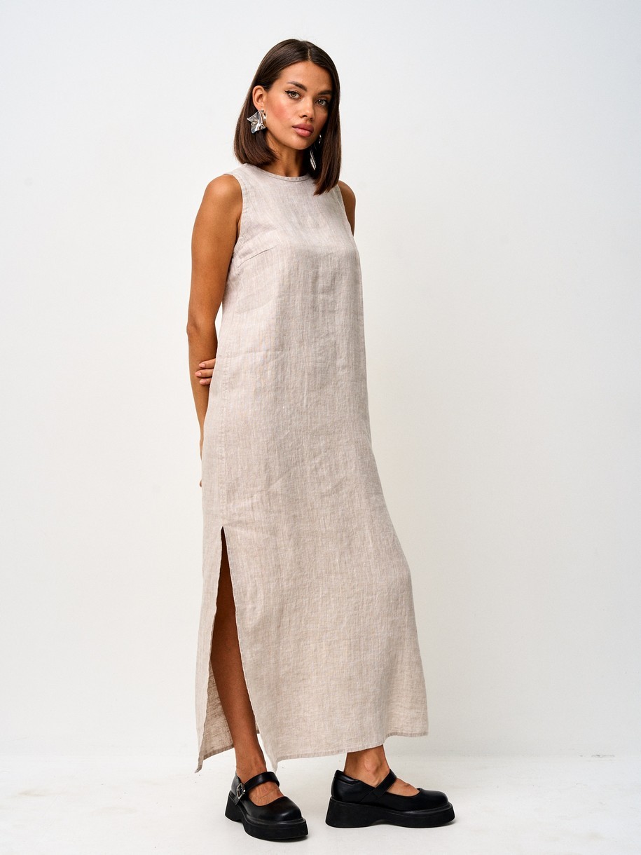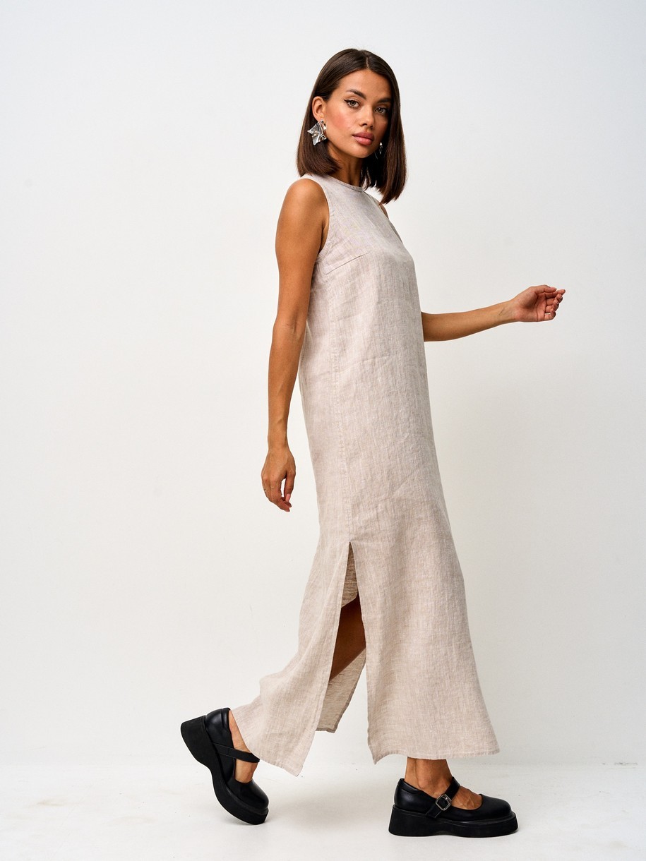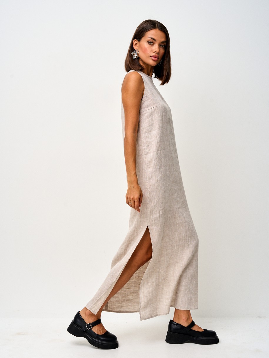Это платье — воплощение утончённого минимализма: без лишних деталей, но с невероятной силой формы. Выполненное из 100% натурального льна, оно дарит ощущение прохлады и лёгкости даже в жаркие дни.