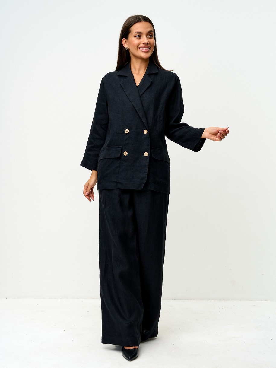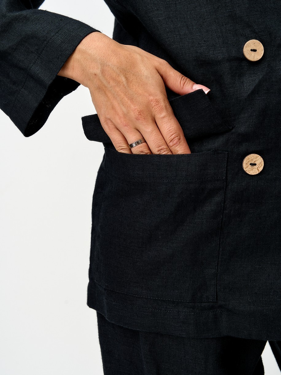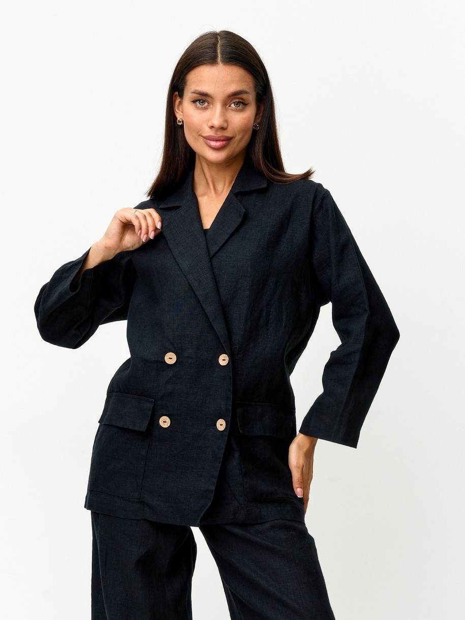 Льняной пиджак — воплощение лёгкой элегантности и деловой непринуждённости. Свободный двубортный крой с длинными рукавами и вместительными карманами выглядит одновременно структурированно и расслабленно. Пиджак легко сочетается с брюками, джинсами, платьями и юбками. Подходит для офиса, прогулок и путешествий — один пиджак, сотни образов. Это не просто верхняя одежда, а универсальный стильный акцент, который добавляет уверенности без усилий. Идеальное решение для современной женщины, которая ценит качество, комфорт и безупречный внешний вид.